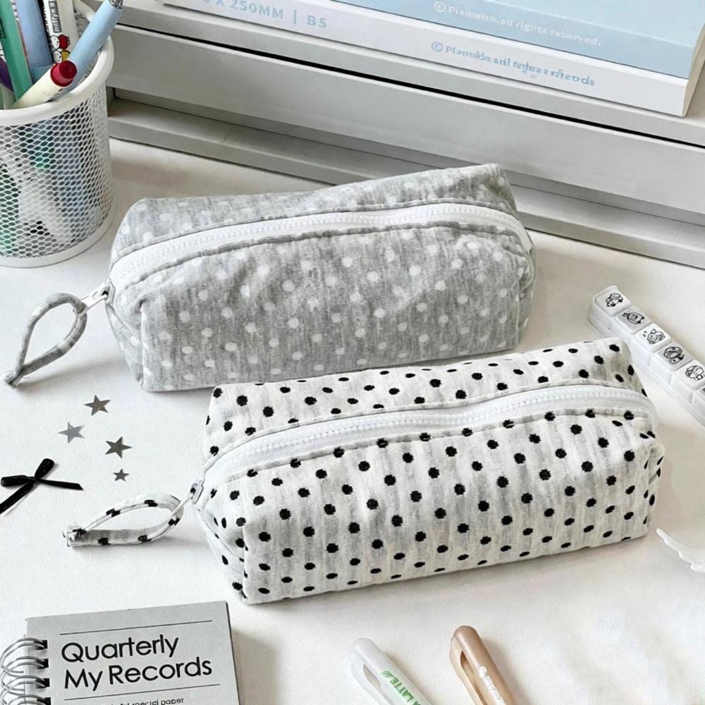 INS Polka Dot Design Pencil Case Large-capacity Soft Touch Stationery Pouch Pen Bag Students
