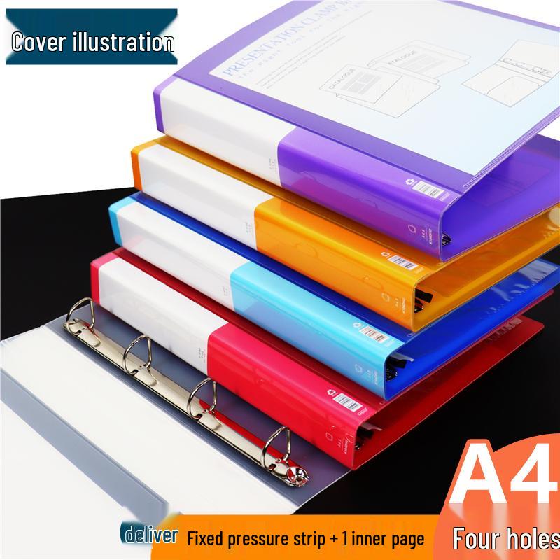Clear A4 D-Ring Four-Hole Binder - Transparent Cover for Loose-Leaf Pages.