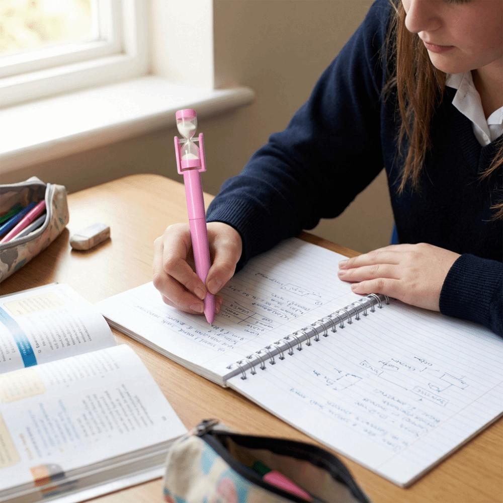 Crafted for fluent writing, this multipurpose ballpoint pen features black ink that glides effortlessly on paper, delivering a consistent and smooth flow for perfect notes, diaries, or daily writing tasks. Each pen is adorned with a unique sand clock design, allowing you to take a 10-second break at specific intervals to relax.
