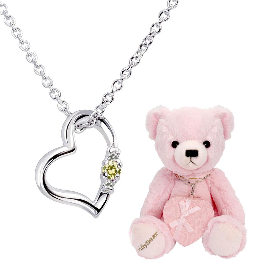 Natural Diamond Heart Necklace for Teddy Bear Plush Toy August Peridot Pink Bear [Sears] Women, Set, 1491-tdt-01-p8