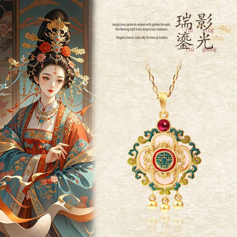 Guochao Style Four-Leaf Clover Pendant Necklace: Elegant Enamel & Hetian Jade Design for Women