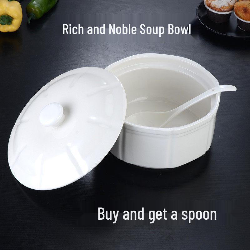Large Ceramic White Soup Tureen with Lid - Perfect for Stewed Chicken, Double Boiling, and Rich Stews