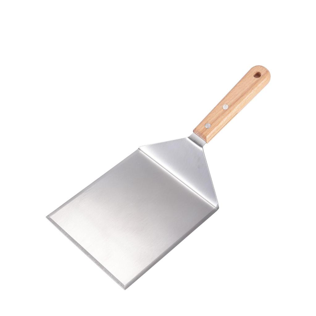 Stainless Steel Curved Shovel with Beech Handle for Pizza, Cake, Pancake, Griddle, Steak, and Cooking.