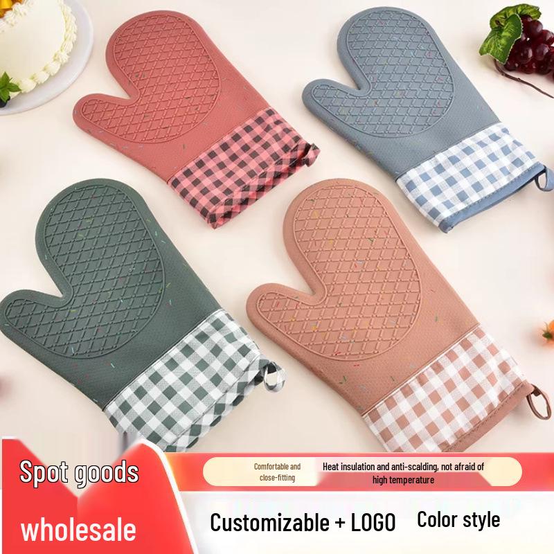 In Stock Color Dot Diamond Pattern Heat-Resistant Silicone Oven Mitts