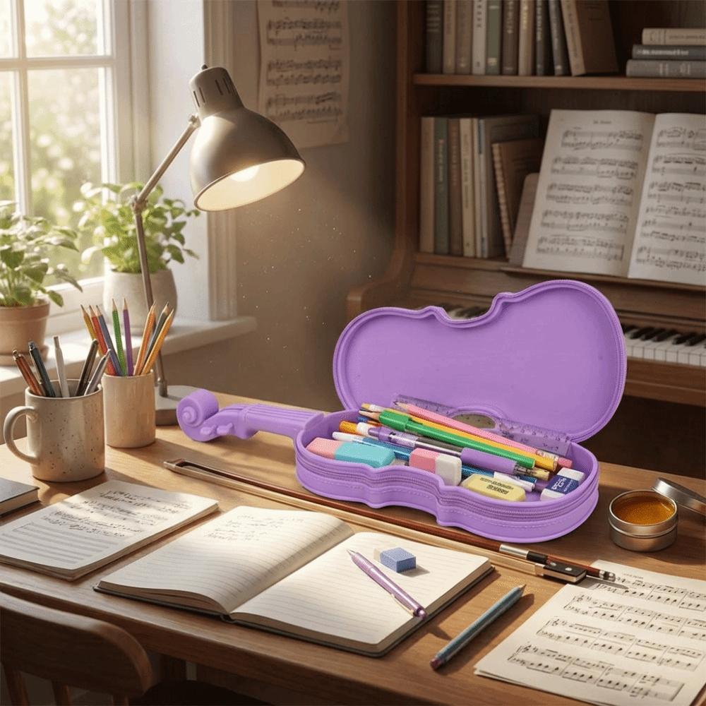1. Cute violin-shaped design, with an eye-catching appearance. It features a three-dimensional violin design with smooth and realistic lines, and is complemented by the macaroon color scheme. It serves as both a practical schoolbag for organizing supplies and a creative desktop decoration, making children love learning and organization.