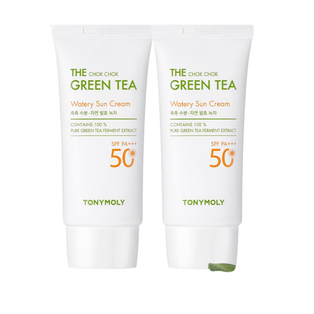 TONYMOLY The Chok Chok Green Tea Sun Cream, Korean Moisture Sunscreen, Fermented Green Tea Sunblock, Hydrating UV Protection, K-beauty Sun Care Set, No White Cast Sunscreen, Lightweight Sun Cream, South Korean Cosmetics, Antioxidant Sunscreen, Value Sun Care Pack.
