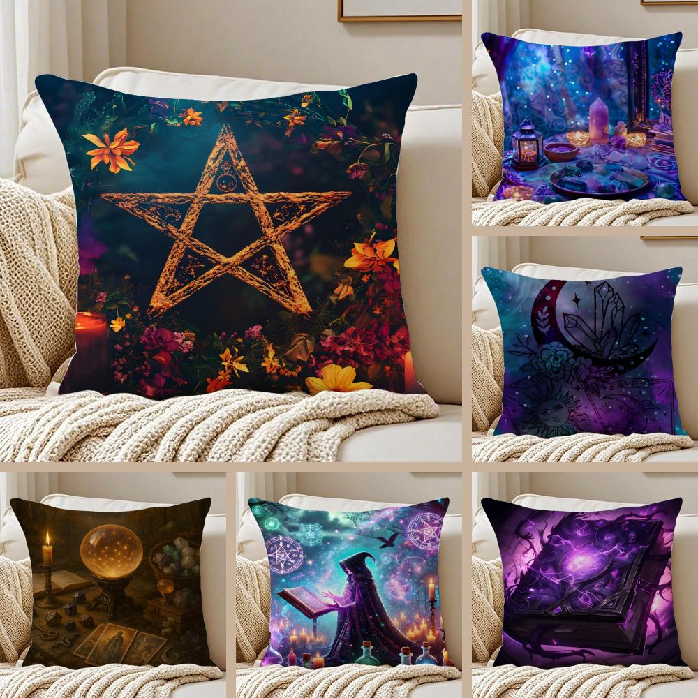 Dreamlike Magical Pattern Cushion Cover Pillowcase Antidustmite Invisible Zipper Short Plush Sofa Cushion