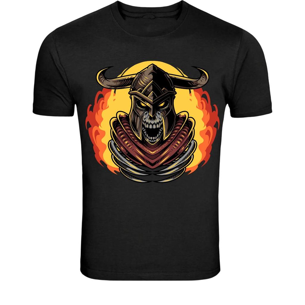 Skull Warrior Helmet T-Shirt - Dark Fantasy Fire Knight Graphic