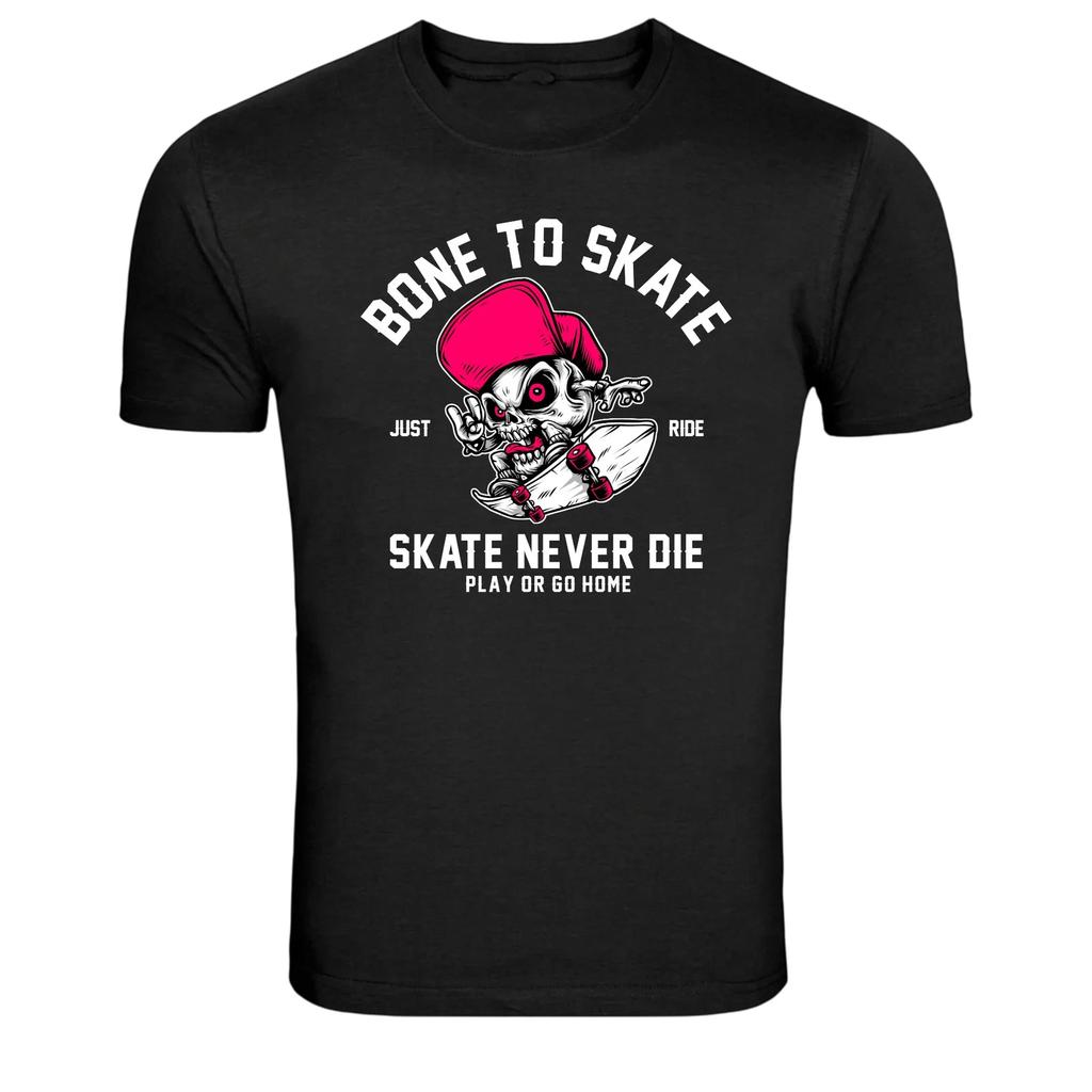 Bone To Skate Skull Skateboard Graphic Skater T-Shirt