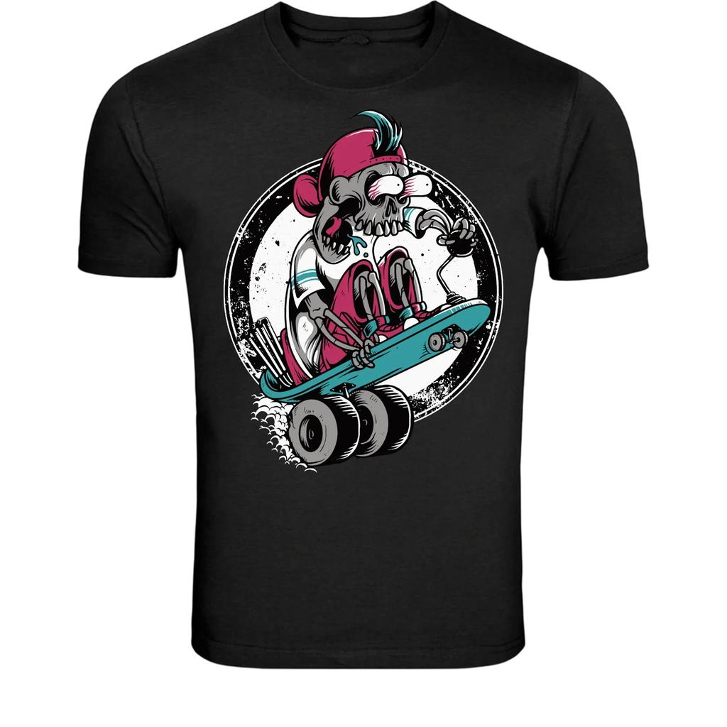 Punk Skeleton Skateboard T-Shirt - Rock Skater Skull Graphic Tee
