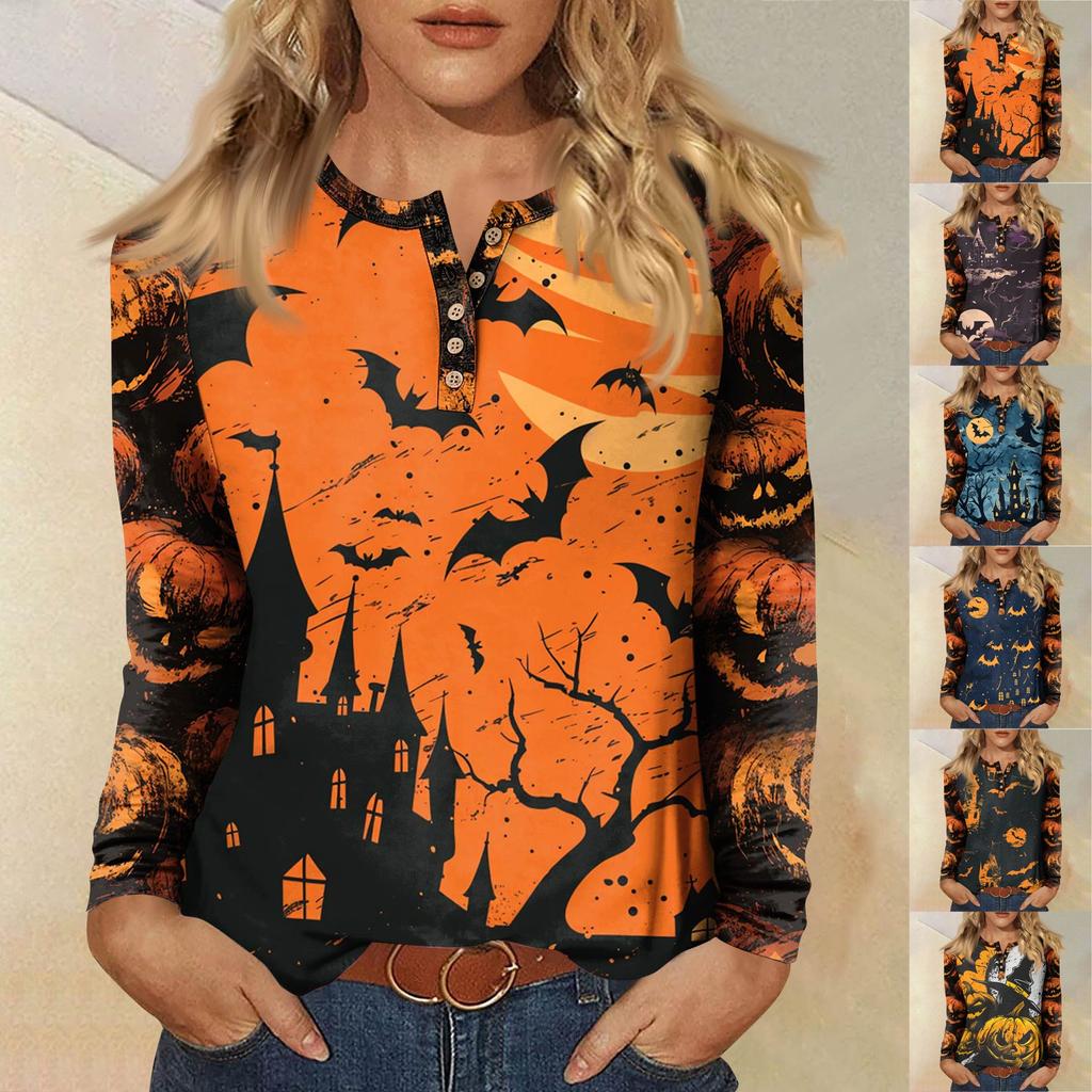 Women's T Shirt Print Long Sleeve Daily Fashion Basic Round Neck Button Raglan Sleeve Top