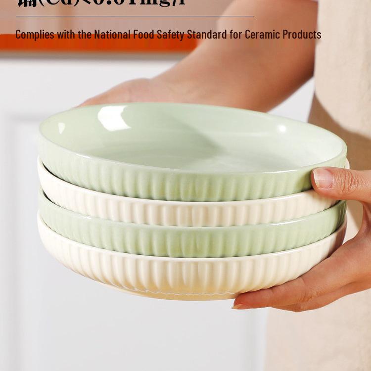Ceramic Cream Color Block Dish Set, 4/6-Piece Deep Plate Tableware - Modern 2025 Style.