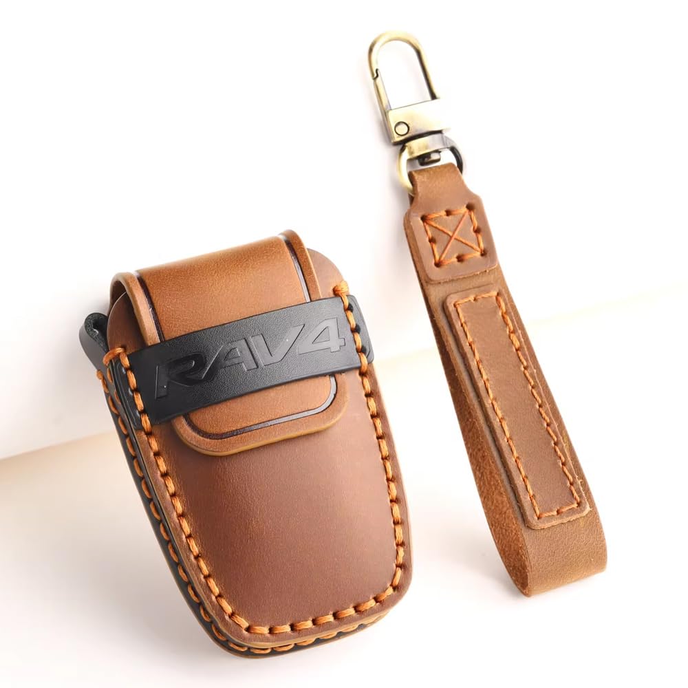 New Key Toyota RAV4 XA50 Series Exclusive Genuine Leather Key Case Leather Key Cover Key Holder Smart Key Case with RAV4 Logo Scratch Resistant Custom
