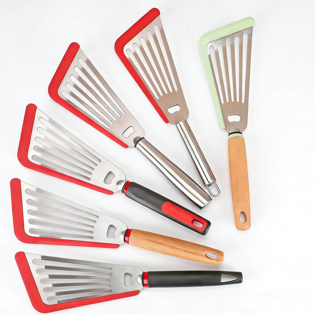 Stainless Steel Silicone Multi-functional Slotted Spatula - High Temp Resistant for Fish & Steak Frying, Cooking Tool