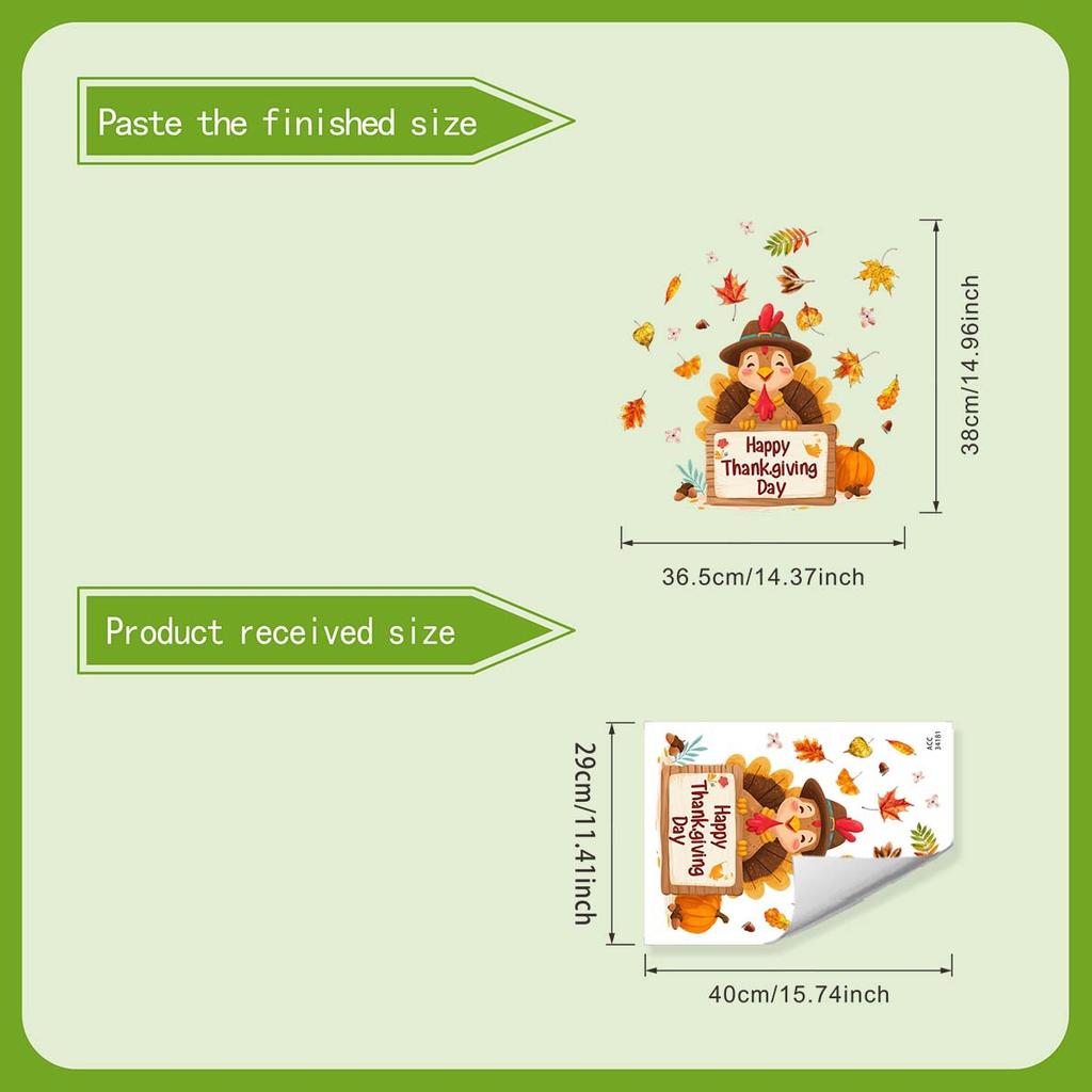 Retro-style Thanksgiving Turkey Window Sticker with Warm Elements. Self-adhesive, No Residue.