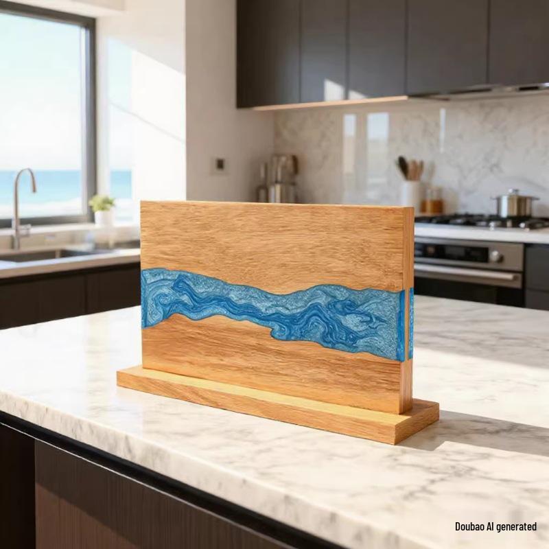 Double-Sided Magnetic Acacia Wood Knife Holder with Resin Mosaic
