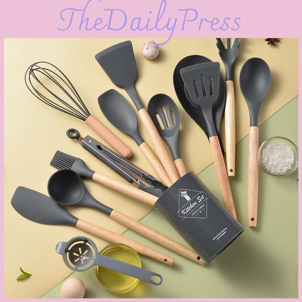 Elevate your kitchen game with this 11-piece set of silicone kitchen utensils featuring a sleek milk-white wooden handle design.This kitchen set includes everything you need for all your cooking and serving needs, from spatulas to ladles to tongs, and more.Each utensil is made from high-quality silicone material that is durable, heat-resistant, and non-stick, making it easy to clean and safe for use with all types of cookware.