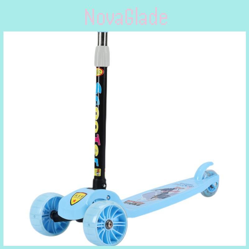 Kids Scooter For 1-3-6 Year Old Boys Girls Beginners With Wide Folding Deck Flashing Wheels Mo Lo Blue