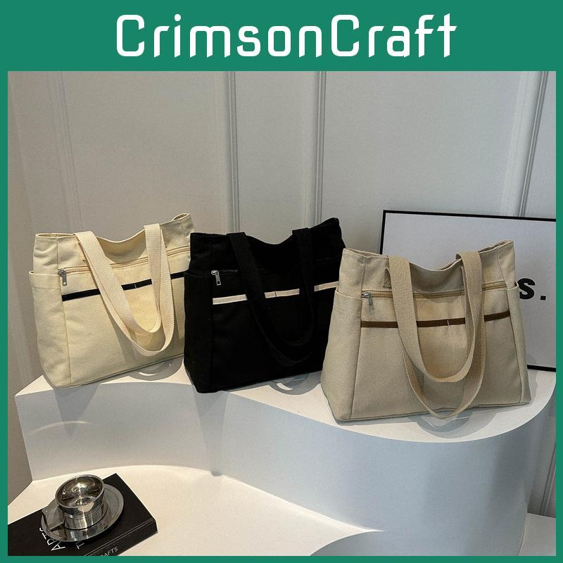 Large Capacity Canvas Tote Bag Street Style Shoulder Bag Chic College Student Commuter Crossbody Purse
