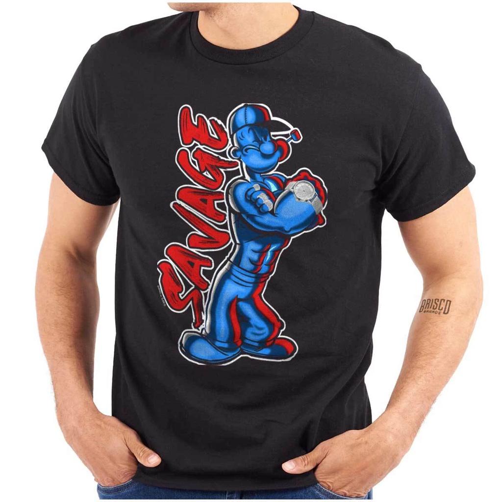 Urban Popeye the Sailor Man Savage Cartoon Womens or Mens Crewneck 100% Cotton T-shirt Mens Tees Top Tee
