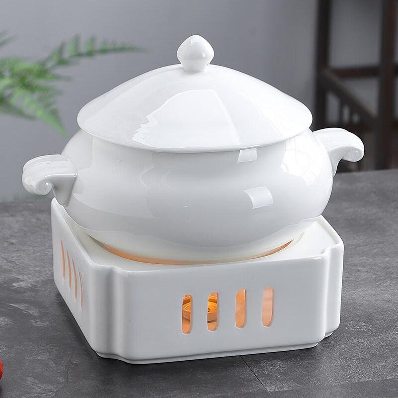 Jingbaodi Ceramic Double-Ear Soup Pot with Candle Heater