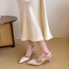 2026 New Summer Classic Champagne Black Banquet Wedding Shoes Sexy Rhinestone Satin Pointed Toe High Heel Sandals for Women