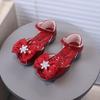 Girls' Rose Ribbon Bow and Rhinestone-Decorated Patent Leather Soft-Sole Princess Shoes / Fish-Mouth Children's Princess Sandals