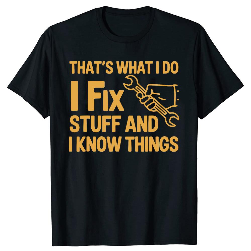 Thats What I Do I Fix Stuff and I Know Things Handyman Tshirts Men Fashion Print Oversized Streetwear Hip Hop Unisex T Shirt