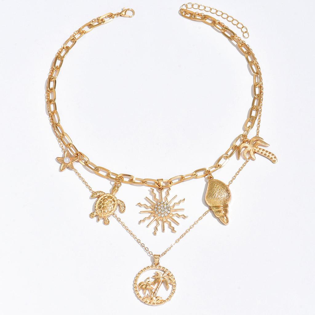 Summer Fashion Star Shell Necklace With Sun Charm For Women Casual Wear