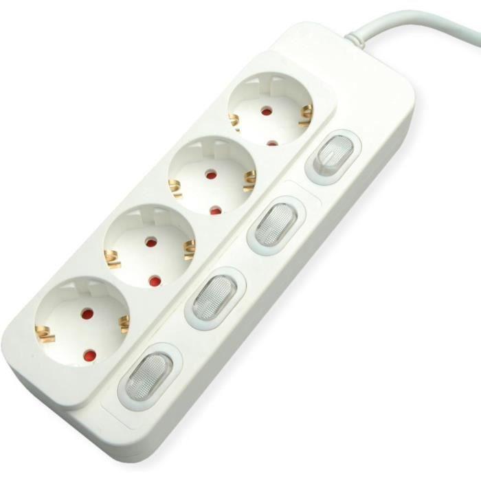 Bloc multiprises - ROLINE - ROLINE - 4 prises - Interrupteurs individuels éclairés - Câble 6 m