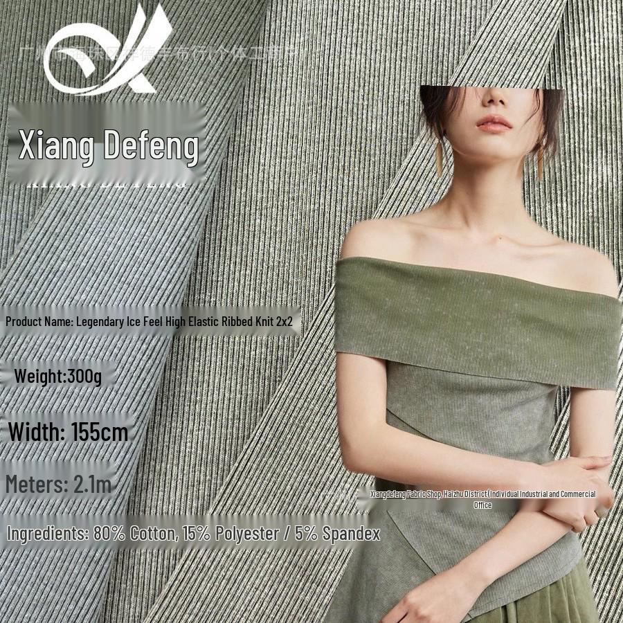 Wax-Dyed Washable Ribbed 2x2 Ice-Feel High Elastic 300g Retro Distressed Fabric, Salt-Fried Snowflakes Finish