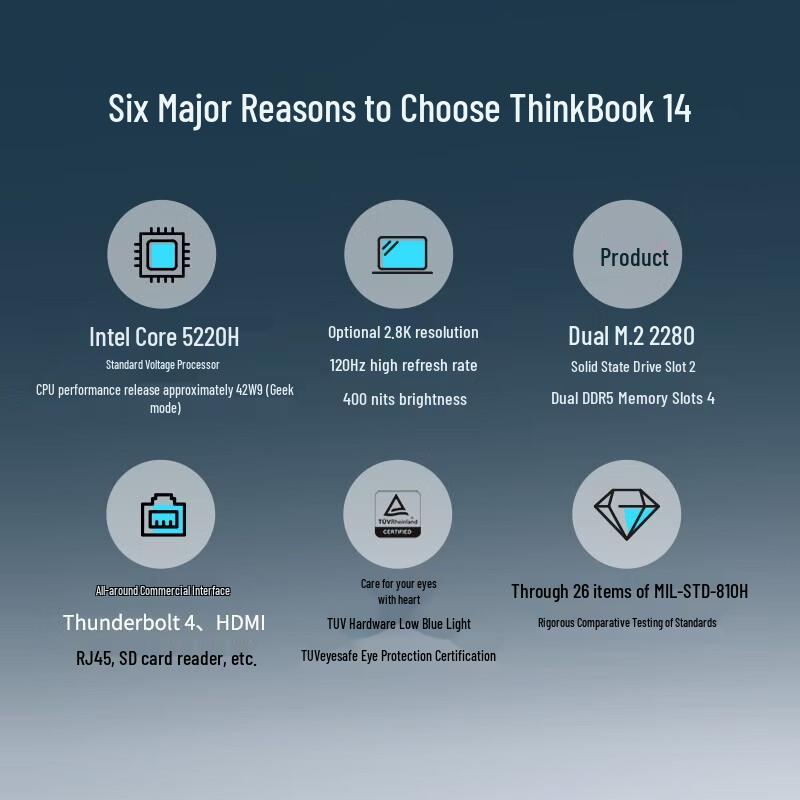 Lenovo ThinkBook 14 Laptop - Intel Core 5 220H, 24GB RAM, 1TB SSD, 2.8K 120Hz Display (CN Version)