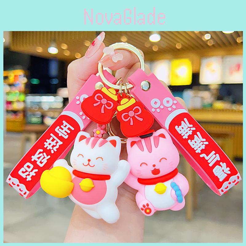 Adorable Lucky Fortune Cat Keychain Cute Soft Rubber Cartoon Charm For Bags And Keys