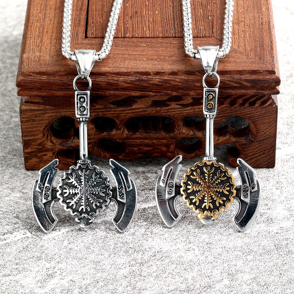 Nordic Style Viking Stainless Steel Double-Headed Axe and Snowflake Pendant.