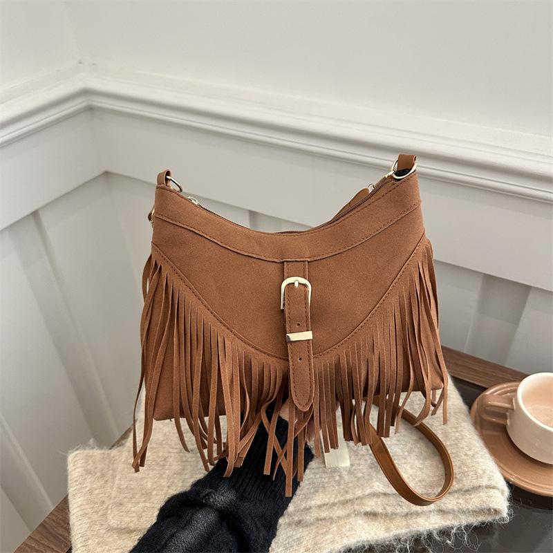 Bag - Women's Elegant and Niche Underarm Bag, Trendy Commuter Bag, Fringed Single-shoulder Crossbody Bag