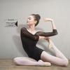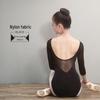 Women's Black Three-Quarter Sleeve Ballet Leotard for Dance Practice and Exams