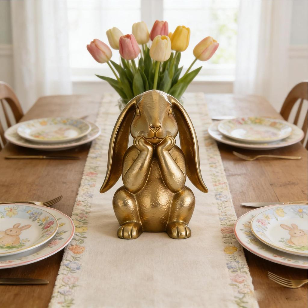 Gold Easter Bunny Figurine Thinking Rabbit Statue Spring Home Accents Resin Sculpture for Tabletop Shelf Farmhouse Office Decor