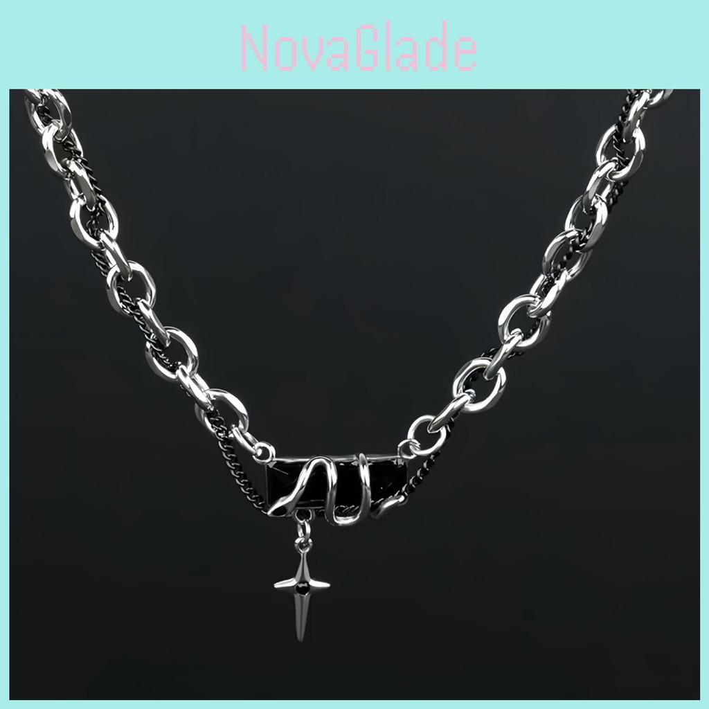 Snake Winding Geometric Titanium Steel Necklace For Men With Starry Effect And Hiphop Style