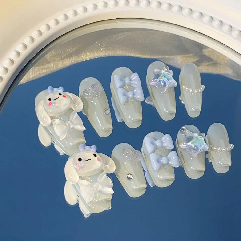 Introducing the exquisitely crafted Cartoon Cinnamoroll with an overflow of girlish charm! This stunning piece of art is meticulously handmade, ensuring top-notch quality and attention to detail. The detachable nail stickers add a touch of versatility, allowing you to switch up your style whenever you desire.