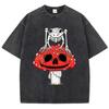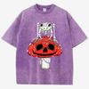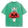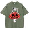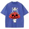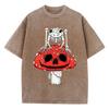 Cottagecore Mushrooms Skeleton Frog Print Women Washed T Shirt Summer Cotton T-Shirt Casual O-Neck Clothes