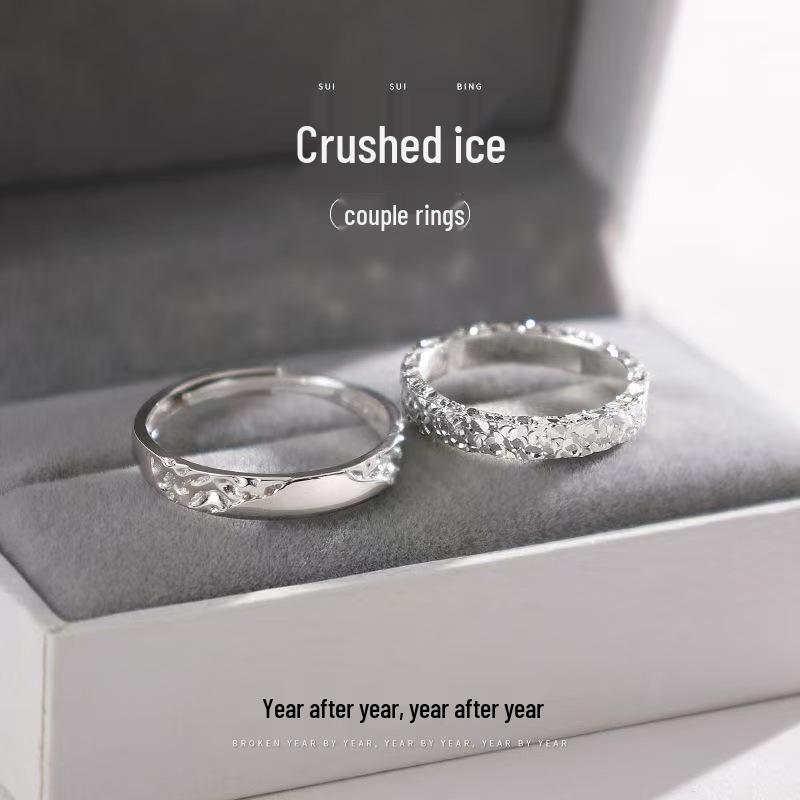 999 Sterling Silver Crushed Ice Open Couple's Ring - Elegant, Unisex Valentine's Day Gift