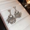 Silver Needle Geometric Rhinestone Tassel Earrings - Luxury Ethnic Style Crystal Studs