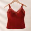 White-Enhancing V-Neck Lace Warm Camisole with Chest Pads - Women's Autumn/Winter Base Layer