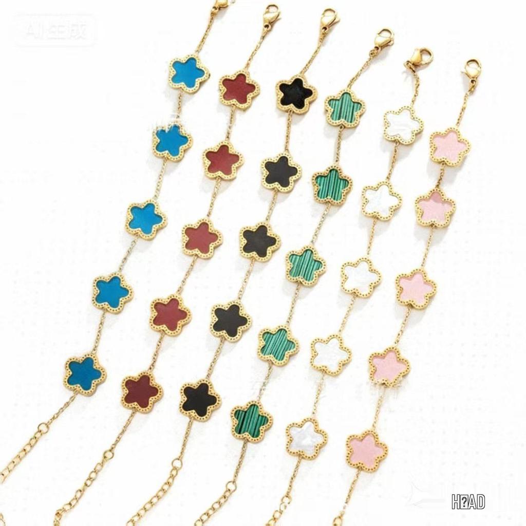 Stainless Steel 18K Gold Double-Sided Clover Flower Bracelet