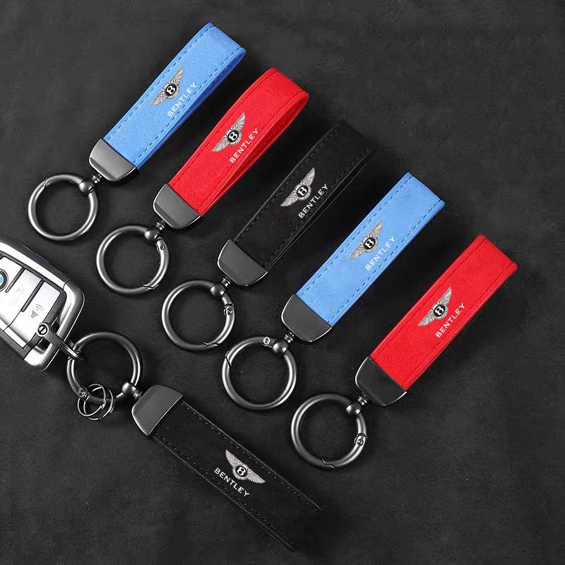 Car Styling Emblem Alloy Keyring for New Bentley Flying Spur Continental GT Bentayga Mulsanne Motorcycle Suede Leather Keychain