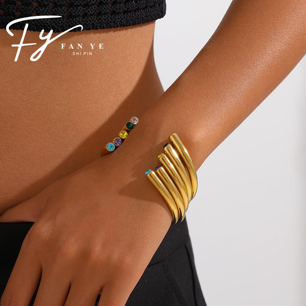 Cross-Border Gold Luxury Rhinestone Stainless Steel Open Bangle Bracelet