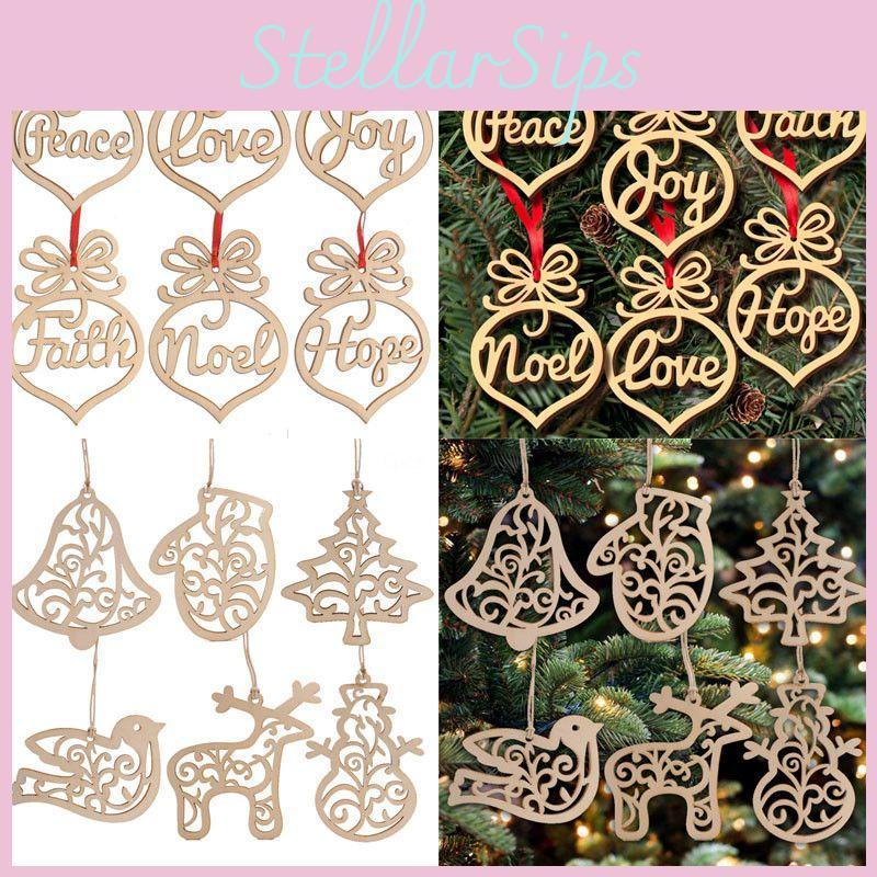 6pcs Christmas Decoration Wooden Pendants Unique Xmas Tree Hanging Ornament Collection