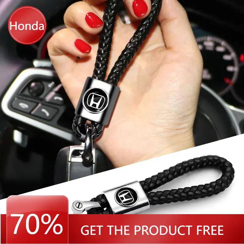 2025 Car New Honda Metal+Braided Car Key Chain Key Ring Key Lanyard Car Emblem For Honda Civic Mugen Accord Odyssey JAZZ CRV Fit
