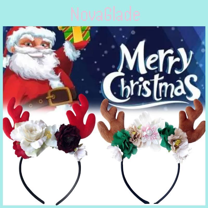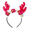 Festive Red Velvet Reindeer Antlers Headband With Floral Design For Girls