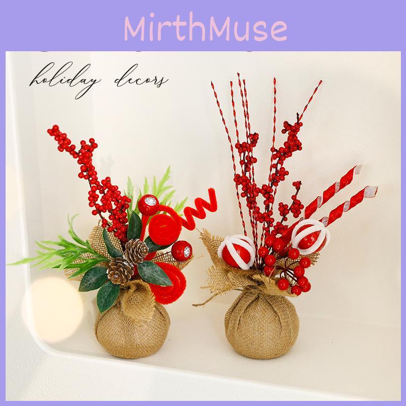 This mini Christmas tree decoration features a compact design suitable for tabletop display during the holiday season. Crafted from durable materials, it measures approximately 30cm tall, with decorative like hawthorn roll sticks, red and whites, and red Christmas flowers, adding festive charm.